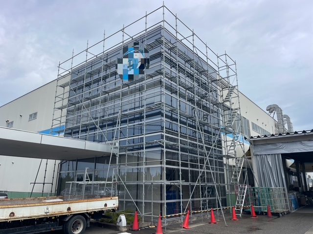 某大手企業の事務棟と工場棟で足場を組立しました。